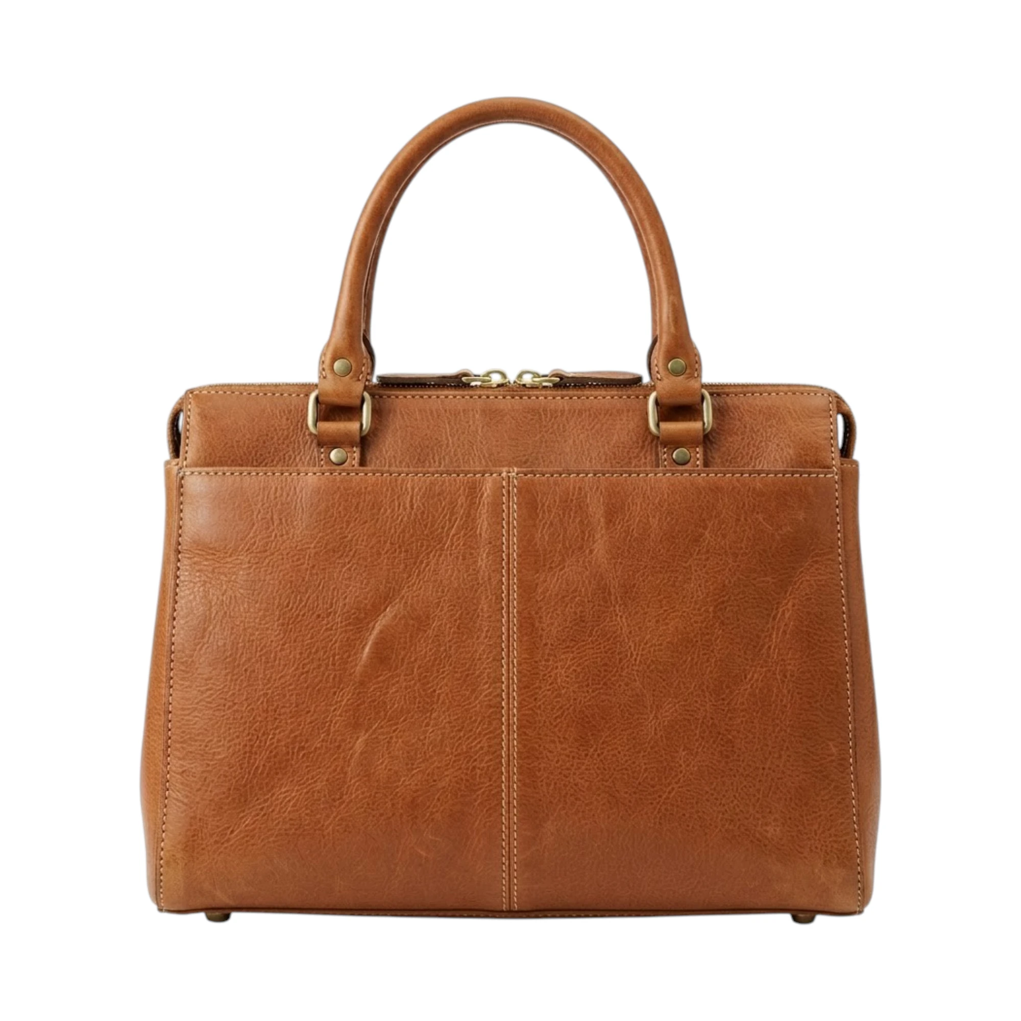 Double Top Handles: Firmly attached rolled leather handles designed for secure hand or elbow carry.